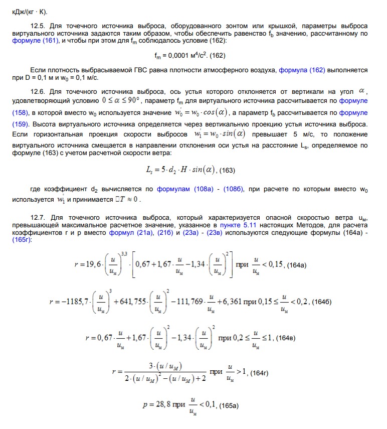 12.1. Для расчетов рассеивания выбросов при условии, что температура ГВС Tг превышает 3000 °C, производится замена рассматриваемого источника на виртуальный с учетом положений, изложенных в пункте 12.2 настоящих Методов.